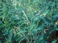 - ↑ Smith, R. J. (1986). Biological control of Northern Jointvetch (Aeschynomene virginica) in rice (Oryza sativa) and soybeans (Glycine max): A researcher's view. Weed Science 34, supp 1: Microbiological Control of Weeds Symposium. 17-23.