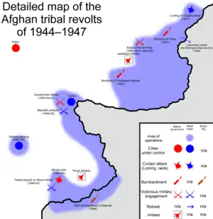 ![]() Detailed map of the Afghan tribal revolts of 1944–1947. | |||||||