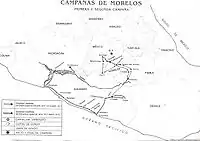 Morelos's military campaign was based along the west coast of Mexico and its interior, a region that had a predominantly mixed-race population. Among those who distinguished themselves in his military campaign were Afro-Mexicans Hermenegildo Galeana and Vicente Guerrero. Galeana was killed in battle in 1814, much to the distress of Morelos.[15]