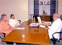 Afroz Ahmad discussing Narmada Rehabilitation issue with Narendra Modi, presently Prime Minister of India on 22 July 2006.