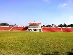 Agartala (/ˌʌɡərtəˈlɑː/, Bengali: [agorot̪ɔla] ⓘ, Kok Borok: [agaratala])[6] is the capital and the largest city of the Indian state of Tripura, situated on the banks of Haora River, about 2 kilometres (1.2 mi) east of the border with Bangladesh[7] and about 2,499 km (1,552 mi) from the national capital, New Delhi.[8] According to 2022 census,[9] Agartala is the third largest city after Imphal metropolitan in Northeast India. It is India's third international internet gateway and being developed under the Smart Cities Mission .[10]