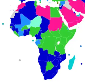 Scope: all jurisdictions per list of sovereign states and dependent territories in Africa.