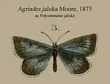 Agriades jaloka, the Jaloka mountain blue, is a butterfly in the family Lycaenidae. It is found in Asia.