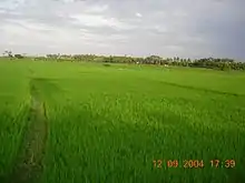 The ancient Tamils cultivated a wide range of crops such as rice, sugarcane, millets, pepper, various grams, coconuts, beans, cotton, plantain, tamarind and sandalwood. Paddy was the main crop and different varieties of paddy such as Vennel, Sennel, Pudunel, Aivananel and Torai were grown in the wet land of Marutam. Sennel and pudunel were the more refined varieties. In a very fertile land, a Veli of land yielded 1000 Kalam of paddy. The peasants lived under the shady groves beyond the Marutam land. Each house had jack, coconut, palm, areca and plantain trees. Turmeric plants were grown in front of the houses and flower gardens were laid in between the houses. The Mullai people undertook the cultivation of fruit trees and crops for cattle. The sugarcane producers even employed mechanical contrivances to extract juices from it. In some plots, rotation of crops was followed – cotton and millet were grown simultaneously on a plot and after that, beans were cultivated on the same land. There, generally, was surplus from the produce. Each village was almost self-sufficient and if necessary people bought additional commodities from neighboring villages. Such trade happened under the barter system, with paddy and salt being used as the medium of buying and selling. The agricultural surplus produced by the villages is one of the reasons for the growth of urban centers in ancient Tamilakam. According to Dr. Venkata Subramanian, "Towns can emerge precisely at the moment when the agriculturists start producing a surplus that can sustain basically 'Non-productive urban residents' ".[6] The king also depended on this surplus, since the soldiers and workers were paid in kind, i.e. grains. These factors ensured adequate demand for the produce, which in turn accelerated cultivation.