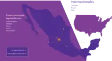 International destinations from Aguascalientes International Airport Red = Year-round destination Blue = Future destination Green = Seasonal/charter destination |
