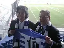 Ahn Jung-hwan (Korean: 안정환; RR: An Jeong-hwan, Korean pronunciation: [an.dʑʌŋ.ɦwan] or [an] [tɕʌŋ.ɦwan]; born 27 January 1976) is a South Korean former football player and television personality. Ahn played for South Korea as a second striker and scored a total of three goals in two FIFA World Cups, including a golden goal against Italy. After his retirement as a footballer, he became a television host and a football commentator.[3]