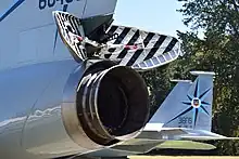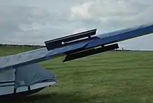 In aeronautics, air brakes or speed brakes are a type of flight control surface used on an aircraft to increase the drag on the aircraft.[1] Air brakes differ from spoilers in that air brakes are designed to increase drag while making little change to lift, whereas spoilers reduce the lift-to-drag ratio and require a higher angle of attack to maintain lift, resulting in a higher stall speed.[2]