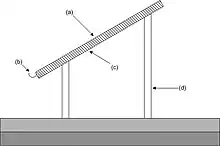 A radiative air well is designed to cool a substrate by radiating heat to the night sky. The substrate has a low mass so that it cannot hold onto heat, and it is thermally isolated from any mass, including the ground.[43] A typical radiative collector presents a condensing surface at an angle of 30° from the horizontal. The condensing surface is backed by a thick layer of insulating material such as polystyrene foam and supported 2–3 metres (7–10 ft) above ground level. Such condensers may be conveniently installed on the ridge roofs of low buildings or supported by a simple frame.[44] Although other heights do not typically work quite so well, it may be less expensive or more convenient to mount a collector near to ground level or on a two-story building.[45]