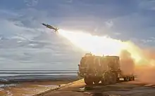 Akash (Hunterian: Akash, lit. 'Sky') is a medium-range mobile surface-to-air missile (SAM) system developed by the Defence Research and Development Organisation (DRDO) and produced by Bharat Dynamics Limited (BDL). Surveillance and Fire control radar, tactical control and command center and missile launcher are developed by Bharat Electronics (BEL), Tata Power Strategic Engineering Division and Larsen & Toubro.[6][7][8][9] The Akash missile system can target aircraft up to 45 km (28 mi) away.[10] It has the capability to neutralise aerial targets like fighter jets, cruise missiles and air-to-surface missiles as well as ballistic missiles.[10][11][12] It is in operational service with the Indian Army and the Indian Air Force.