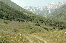 The Aksu-Zhabagly Nature Reserve (Kazakh: Ақсу-Жабағылы қорығы, Aqsu-Jabağyly Qoryğy; Russian: Aксу-Жабаглинский заповедник, Aksu-Zhabaglinskiy zapovednik) is the oldest nature reserve in Central Asia. It is located in the southern province of the Republic of Kazakhstan. It covers the north-western mountain chains of the Tian Shan. Its name is derived from the biggest river in the area, the Aksu, and the mountain chain Zhabagly which is located in the northern part of the area.
