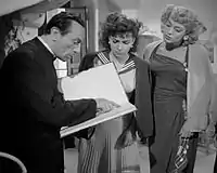 A scene from the film featuring De Filippo, Lollobrigida and Sanson.