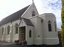 • St John's Church (1841–1848) is a stone building with shingled roofs in the Old Colonial Gothick Picturesque style. Set among trees, it was designed to be part of an overall contrived picturesque scene in the manner of an English garden landscape.[18]