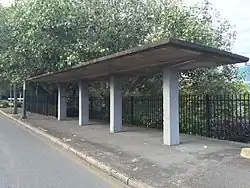 The second design was the pillbox with single-cantilevered roof slab, or "bus" type shelter, as it was called in the original Brisbane City Council list. These were designed so that the three brick blast walls could be removed after the war, leaving a concrete back wall and five brick piers at the front. Again, entrances were at each end of the front wall. Of the 19 "bus" types listed only two survive, at Newmarket and Newstead.[1]