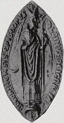 The Pope followed legate Otto's earlier dispensation, and on 19 July 1246 issued the mandate for confirmation and consecration to the Kingdom of Scotland's three senior bishops: David de Bernham, Bishop of St Andrews; William de Bondington, Bishop of Glasgow; and Geoffrey de Liberatione, Bishop of Dunkeld.[7] The consecration took place sometime before 13 May 1247, the date Albin was given his first recorded task as a consecrated bishop, when he, Clement, Bishop of Dunblane, and David de Bernham, Bishop of St Andrews, were authorised to perform the episcopal consecration of Peter de Ramsay as Bishop of Aberdeen.[8]