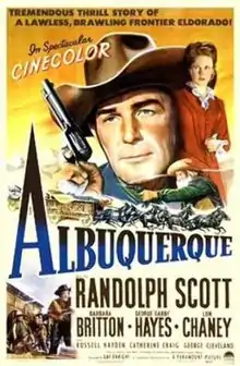 Albuquerque is a 1948 American Cinecolor Western film directed by Ray Enright and starring Randolph Scott, Barbara Britton, George "Gabby" Hayes, and Lon Chaney Jr. Based on the novel Dead Freight for Piute by Luke Short, with a screenplay by Gene Lewis and Clarence Upson Young, the film is about a man who is recruited by his corrupt uncle to inherit his freight-hauling empire in the southwest, and who eventually defects to his uncle's honest business rival.[3]