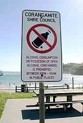 A sign prohibiting the drinking of alcohol in a public place in Victoria, Australia