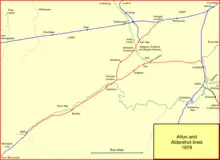 Alton station was built as a terminus, but three routes were built, connecting to it from the west.