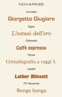 • Novarese (1978), wedge-serif font with a nearly upright italic.[11]