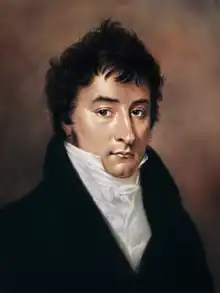 The latter had, despite the health problems outlined earlier, bonds of esteem with Lombard Romantics, especially those intellectuals who used to frequent Carlo Porta at his home: Gaetano Cattaneo, Giovanni Torti, Tommaso Grossi, Luigi Rossari and the painter and writer Giuseppe Bossi. It was Bossi who introduced Manzoni to these intellectuals, but the author of the Sacred Hymns, although maintaining friendly relations with them, never officially joined the group, especially because of the linguistic-literary project pursued by Porta, antithetical to Manzoni's linguistic research and never appreciated by Manzoni.[36][37] The most explanatory judgment on Porta can be found in his letter of January 29, 1821, sent to Fauriel in which, among other things, the departure of the dialect poet and his legacy is also recalled: