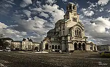 St. Alexander Nevsky Cathedral (Bulgarian: Храм-паметник "Свети Александър Невски", Hram-pametnik "Sveti Aleksandar Nevski") is a Bulgarian Orthodox cathedral in Sofia, the capital of Bulgaria. Built in Neo-Byzantine style, it serves as the cathedral church of the Patriarch of Bulgaria and it is one of the 50 largest Christian church buildings by volume in the world. It is one of Sofia's symbols and primary tourist attractions.[3] St. Alexander Nevsky Cathedral in Sofia occupies an area of 3,170 square metres (34,100 sq ft) and can hold 5,000 people inside.[3][1] It is among the 10 largest Eastern Orthodox church buildings. It is the largest cathedral in the Balkans. It is believed that up until the year 2000 it was the largest finished Orthodox cathedral.