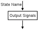 Conditional Output Box: An oval denotes the output signals that are of Mealy type. These outputs depend not only on the state but also the inputs to the FSM.