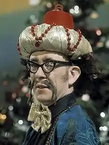 Bongo was featured in an episode of children's TV show Rainbow, appeared in the science fiction show The Tomorrow People in the serial "Revenge of Jedikiah", and had a slot in Zokko!.[7] He also acted as the magical advisor on the TV show Doctor Who and the 1970s cult series Ace of Wands. In 1988 he made a brief appearance in the LWT newspaper-based comedy show Hot Metal. His well-known ability for devising tricks and illusions and solving magical problems inspired the TV writer David Renwick to create a character who was a magician's assistant and amateur sleuth in the series Jonathan Creek. Bongo was magical adviser to the series.[1][3]