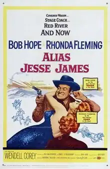 Alias Jesse James is a 1959 American Western comedy film directed by Norman Z. McLeod and starring Bob Hope and Rhonda Fleming.[2][3] Based on a story by Robert St. Aubrey and Bert Lawrence, the film is about an outlaw who tries to kill an insurance agent who has been mistaken for him in order to collect on a big policy. Costumes by Edith Head.