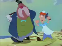 One omitted scene from the 1939 treatment of the film occurred outside the Duchess' manor, where the Fish Footman is giving a message to the Frog Footman to take to the Duchess, saying that she is invited to play croquet with the Queen of Hearts. Alice overhears this and sneaks into the kitchen of the manor, where she finds the Duchess' Cook maniacally cooking and the Duchess nursing her baby. The cook is spraying pepper all over the room, causing the Duchess and Alice to sneeze and the baby to cry. After a quick conversation between Alice and the Duchess, the hot-tempered Cook starts throwing pots and pans at the noisy baby. Alice rescues the baby, but as she leaves the house the baby turns into a pig and runs away.[55] The scene was scrapped for pacing reasons.
