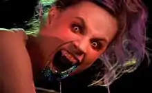 After the chorus, Alison shoots white laser beams from her fingertips, summoning a group of female dancers to join the dancing group of goth men. As the video progresses, Alison uses further power to make the female dancers, who are actually vampires, attack the dancing metalheads and consume their rainbow-coloured blood. Throughout this, Alison continues to sing and dance, urging the vampires to continue to perform the aerobics routine. The video ends with Alison drinking some of the blood, revealing a pair of vampire fangs and laying down in a neon coffin.