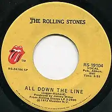 "All Down the Line" is a song by the English rock band the Rolling Stones, which is included on their 1972 album Exile on Main St.. Although at one point slated to be the lead single from the album,[1] it was ultimately released as a single as the B-side of "Happy."