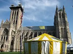 The All Hallows Guild Carousel, or simply the Traveling Carousel, is a historic carousel housed at the National Cathedral in Washington, D.C. since 1963. Previously, it operated as a "county fair" carousel under Clifford Sandretzky as part of a traveling carnival based in the northern Virginia area.[2] The carousel, constructed primarily of wood, is a rare piece believed to have been built by the Merry-Go-Round Company of Cincinnati in the 1890s. It features a unique caliola with brass pipes that was built by the Rudolph Wurlitzer Company of North Tonawanda, New York in 1937.