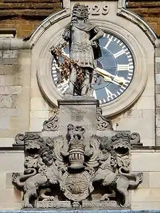 After the fire, Charles II gave a thousand tons of timber for the rebuilding of All Hallows' Church, and one tenth of the money collected for the rebuilding of the town was allocated to the rebuilding of All Hallows', under the management of the King's Lynn architect, Henry Bell and Edward Edwards.[3] Bell was resident in Northampton at the time, and he set to rebuild the church in a manner similar to Sir Christopher Wren's designs.