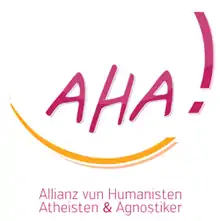 The Allianz vun Humanisten, Atheisten an Agnostiker (English: Alliance of Humanists, Atheists and Agnostics) is a Luxembourgish association that serves the interests of atheists, humanists, skeptics and agnostics in the Grand-Duchy. It also explicitly supports secularist positions. Its official abbreviation is A.H.A. Lëtzebuerg; usually this is shortened to AHA, sometimes with an extra exclamation mark. The AHA was founded on 13 May 2010 as an association without lucrative purpose (asbl).[1] AHA is a member of the European Humanist Federation[2] and the International Humanist and Ethical Union.[3] From 2010 up to 10 May 2019, the association was chaired by biologist Dr. Laurent Schley. The current chair is psychologist Dr. Robert A.P. (Bob) Reuter.