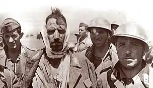 More trouble was experienced from the difficult weather conditions (especially on the southern beaches) and unexpected hidden offshore sandbars than from the coastal divisions. Some troops landed in the wrong place, in the wrong order and as much as six hours behind schedule,[68] but the weakness of the defensive response allowed the Allied force to make up lost time.[63] Nevertheless, several Italian coastal units fought well; the 429th Coastal Battalion (under Major Marco Rubellino[69]), tasked with defending Gela and it's beachead, had lost 45 percent of its men, while the attacking U.S. Army Ranger Battalion lost several men to mines and machine-gun and cannon fire.[70] Gruppo Tattico Carmito (under Lieutenant-Colonel Francesco Tropea), tasked with defending Malati Bridge, defeated a Royal Marines Commando Battalion on 13 July with the help of the local middle-age reservists. The Italian 4th Self-Propelled Artillery Battalion attacked the Commandos with the help of the 372nd Coastal Defence Battalion, 553rd (under Captain Giovanni Sartor) and 554th (under Captain Fausto Clementi) Motorcycle Companies,[71] and three Panzer IV medium tanks.[72][73][74] The 246th Coastal Battalion (under Major Rollo Franco[75]) defeated British attempts to capture Augusta on the night of 11–12 July.[76]