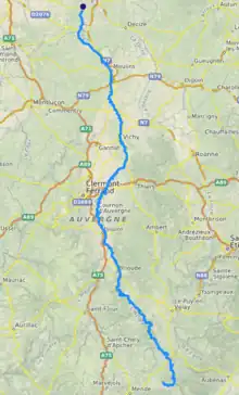 The Allier flows through the following departments, and along the following towns, from source to mouth: