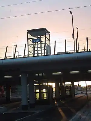 Almere Oostvaarders is a railway station in Almere, Netherlands. It is located 29 km (18.0 mi) east of Amsterdam, on the Amsterdam - Almere - Lelystad main line. It is approximately 3 km (1.9 mi) northeast of the Almere city centre. Almere Oostvaarders railway station opened on 12 December 2004.