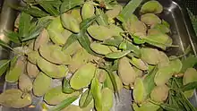 Almond production in Afghanistan is a significant contributor to the nation's agricultural economy. In 2009, it was ranked ninth in the FAO list of almond-producing countries of the world, though its domestic production is limited to 2% of the world production.[1] Afghanistan's almond production has shown a rising trend in the recent decades. Within the country, the southwestern and northern regions have the maximum area under cultivation with Kandahar and Samangan provinces,[2][3] accounting for much of its production, followed by the provinces of Uruzgan, Kunduz, Balkh, Saripul and Daykundi.[1][4][5][6] As of 2012, the cultivated area of almonds was 13,490 ha with a yield rate of 45,960 hectograms (one hectogram = 100 grams) per ha, recording a total yield of 62,000 tonnes, with conducive climatic conditions for growing variety of almond landraces of hard shell and soft shell varieties.[7][8] The preferred markets for the export of Afghan almonds are India and Pakistan,[9][5] with the former preferred because of better profitability.[10]