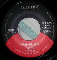 "Alone Again" is a power ballad[6] written and released by the American heavy metal band Dokken on their 1984 album Tooth and Nail. The single reached #64 on the Billboard Hot 100 and #20 on the Hot Mainstream Rock Tracks chart in 1985.[7] The song was written by singer Don Dokken and bassist Jeff Pilson.