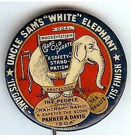 Parker's campaign soon proved to be poorly run as well.[15] Parker and his advisors opted for a front porch campaign, in which delegations would be brought to Rosemount to see Parker speak on the model of McKinley's successful 1896 campaign. However, due to Esopus's remote location and the campaign's inefficient use of funds to bring in delegates, Parker received few visitors.[15] Rather than introducing issues that would differentiate the two parties, the Democrats preferred to emphasize Roosevelt's character, portraying him as dangerously unstable.[18] Parker's campaign also failed to reach out to traditional Democratic voting blocs such as Irish Catholic immigrants.[15] In contrast, Roosevelt's campaign, headed by George Cortelyou, organized committees to appeal specifically to demographics including Jewish, black, and German-American voters.[18] John Hay, Roosevelt's Secretary of State, wrote of Parker's poor showing to Henry Adams, calling it "the most absurd political campaign of our time".[19]