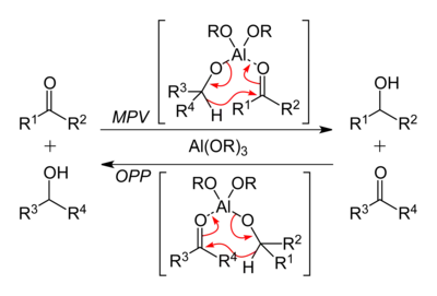 - ↑ Wilds, A. L. (1944). "Reduction with Aluminum Alkoxides (The Meerwein-Ponndorf-Verley Reduction)". Org. React. 2 (5): 178–223. doi:10.1002/0471264180.or002.05.