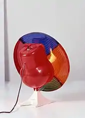 The first aluminum trees could not be illuminated in the manner traditional for natural Christmas trees or other artificial trees. Fire safety concerns prevented lights from being strung through the tree's branches;[4] draping electric lights through an aluminum tree could cause a short circuit.[8] The common method of illumination was a floor-based "color wheel" which was placed under the tree.[8] The color wheel featured various colored segments on a clear plastic wheel; when the wheel rotated a light shone through the clear plastic casting an array of colors throughout the tree's metallic branches.[7] Sometimes this spectacle was enhanced by a rotating Christmas tree stand.[8]
