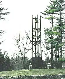 When Alumnae Hall was scheduled to be torn down, there was a Chime Committee appointed, and they met with the board of trustees to investigate the possibility of building an open-faced tower to house the Heath Chime. On October 21, 1977, it was voted to proceed with the construction of a steel tower on Western Campus.[13]