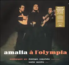 Amália a l'Olympia is a live album recorded by Amália Rodrigues and released on the Columbia label (FSX 123). It was recorded live at l'Olympia in Paris and released in 1956. She was accompanied on Portuguese guitar by Domingos Camarinha and on viola by Santos Moreira.[1]