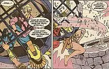 Themyscirian Amazons also possess the ability to relieve their bodies of physical injury and toxins by becoming one with the Earth's soil and then reforming their bodies whole again.[20] The first time Diana does this she prays to her god Gaea saying: "Gaea, I pray to you. Grant me your strength. You are the Earth who suckled me, who nurtured and bred me. Through you all life is renewed. The circle which never ends. I pray you, mother Gaea, take me into your bosom. Please, let me be worthy". During writer John Byrne's time on the comic it was stated that this is a very sacred ritual, to be used only in the most dire of circumstances.[21]