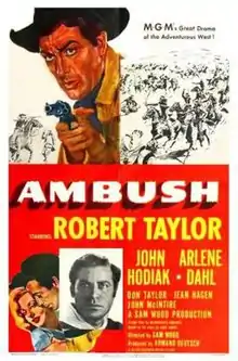 Ambush is a 1950 American Western film directed by Sam Wood and starring Robert Taylor, John Hodiak and Arlene Dahl. The plot is based on the serial story Ambush by Luke Short in The Saturday Evening Post (25 December 1948 – 12 February 1949). It is also the first MGM film in the 1950s'. [3]