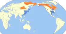 Birds are present all year in southern Alaska, the Great Lakes, and the north-east USA, but most birds winter to the south of the breeding range as far as Mexico with small numbers reaching Hawaii, Central America and the West Indies. Vagrants have reached Colombia and Venezuela and there is a report from Ecuador and another from Peru.[12][13] The first European record was of a bird ringed in New Brunswick which was caught on a boat in Spanish waters in 1937 and there have been a number of additional records from Western Europe since 1990.[5] The first British record was in 1994 in Cheshire.[14]