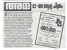- 1 2 Vijayakumar, B. (30 August 2008). "AMMA 1952". The Hindu. Archived from the original on 19 June 2017. Retrieved 19 June 2017.