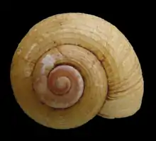 | Apical view of a shell of Amphicyclotulus dominicensis. Width of the shell is 13.2 mm. | |