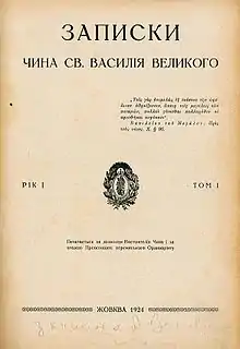 - ↑ "Analecta Ordinis S. Basilii Magni/Zapysky ChSVV". Encyclopedia of Ukraine. Retrieved 31 December 2018.