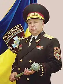 Anatolii Ivanovych Shevchenko (Ukrainian: Анатолій Іванович Шевченко; born 17 May 1948) is the Hetman of the All-Ukrainian Public Organization The Ukrainian Registered Cossacks, member of the Ukrainian Cossacks Council under the President of Ukraine, Honored Worker of Science and Technology of Ukraine, Corresponding Member of the National Academy of Sciences of Ukraine, Doctor of Technical Sciences, Doctor of Divinity, Professor, Rector of the State University of Informatics and Artificial Intelligence, Chairman of the Scientific Council of the Scientific Research Center of the Cossacks named after Hetman Mazepa, head of the editorial board of the all-Ukrainian newspaper "Cossack Ukraine."[1]